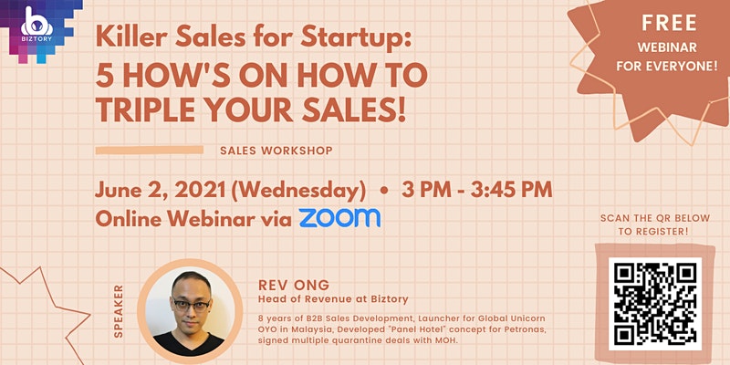 [Killer Sales for Startup: 5 HOW’s on How to TRIPLE Your Sales!] is a sales workshop brought to you by Biztory.
