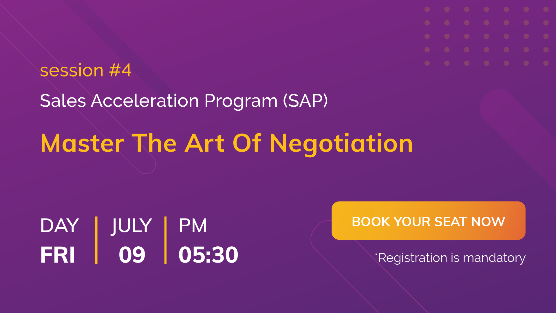Sales negotiation can be a source of dread for salespeople. It’s especially painful when a rep thinks they’ve closed a deal and then the prospect surprises them by wanting to “talk about the details.” With the right sales negotiation strategy & sales negotiation skills training, even this part of the sales process can remain warm and result in a mutually beneficial outcome for all parties. Register for the event and understand the tips and strategy for negotiating a sales deal.