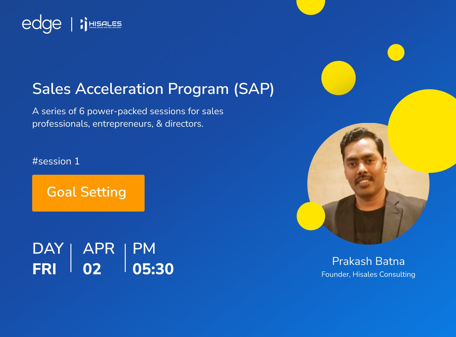The market is evolving. Tactics that were effective a few years back won’t necessarily work now. Hence, we need to be at our toes and develop relevant strategies to land maximum opportunities for business. edge CRM and Hi-Sales Consulting, together are bringing a series of 6 power-packed, informative and engaging sessions by experienced and veteran sales leaders. Do you want to be a part of these exciting sessions? Register your seat today.