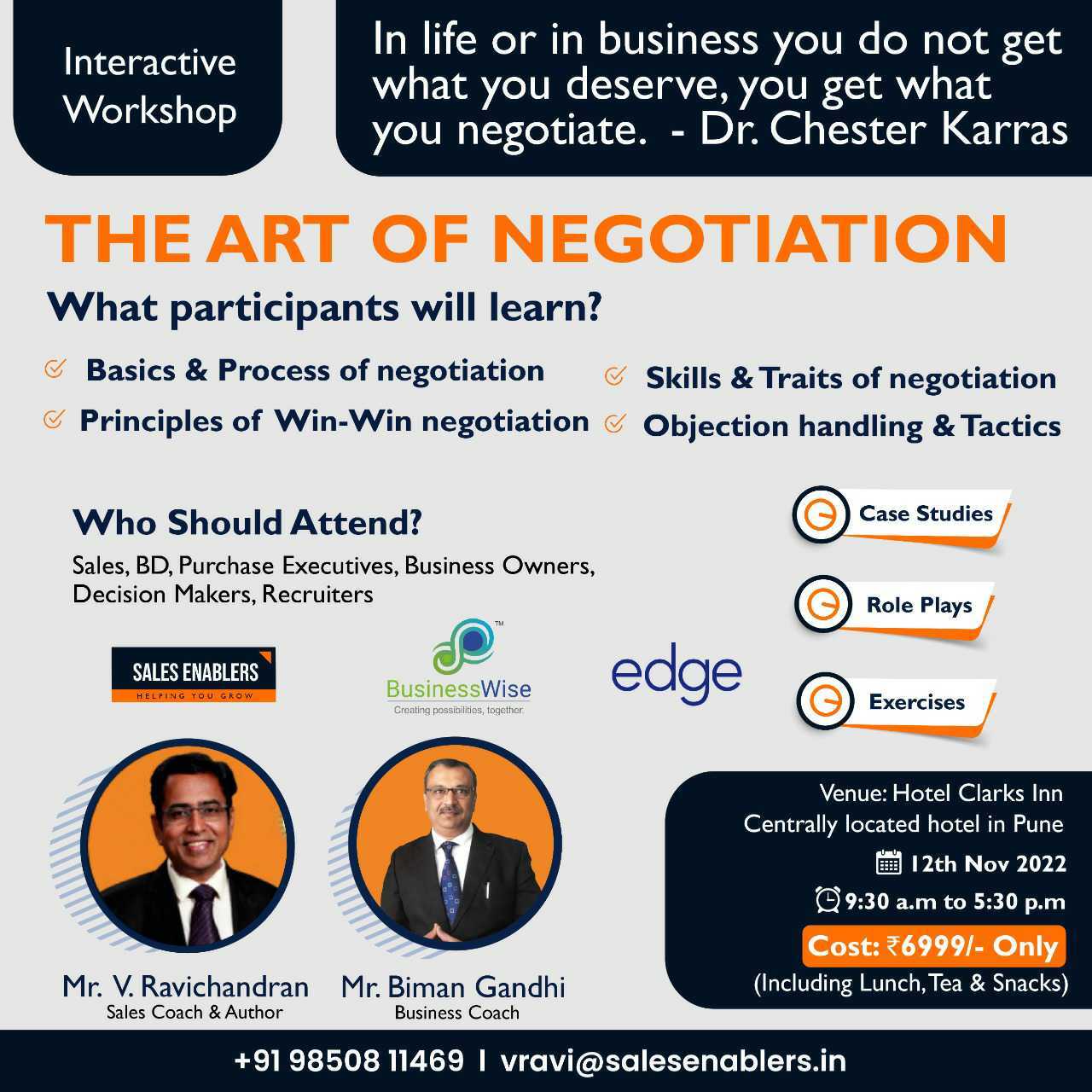 Sales Enablers and BusinessWise announces its first Open Program on *Art of Negotiation* by two highly experienced Coaches.